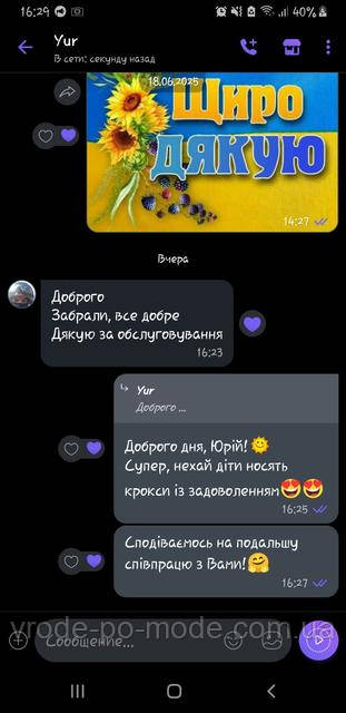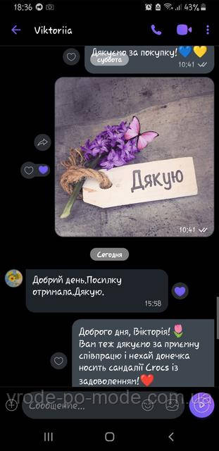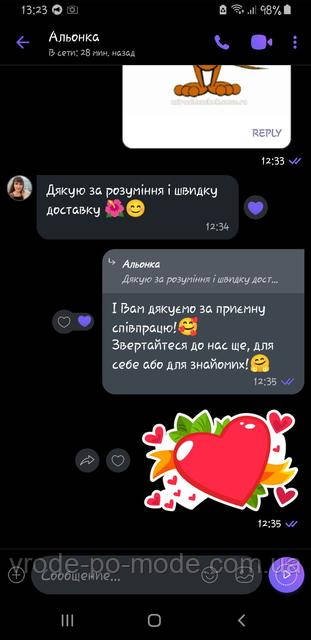 *** Зараз інтернет-магазин "VRODE PO MODE" не може швидко обробляти замовлення та повідомлення, тому що за графіком роботи зараз у нас не робочий час або вихідний день. Ваша заявка буде оброблена сьогодні трохи пізніше або в найближчий робочий день. У міру можливості ми намагаємося обробляти замовлення та повідомлення у вихідні дні, теж. Дякуємо Вас за розуміння! ***